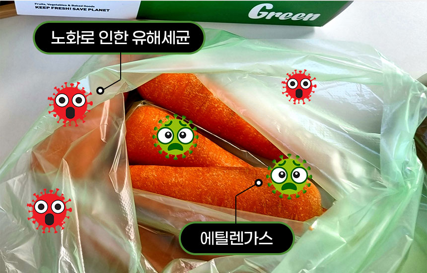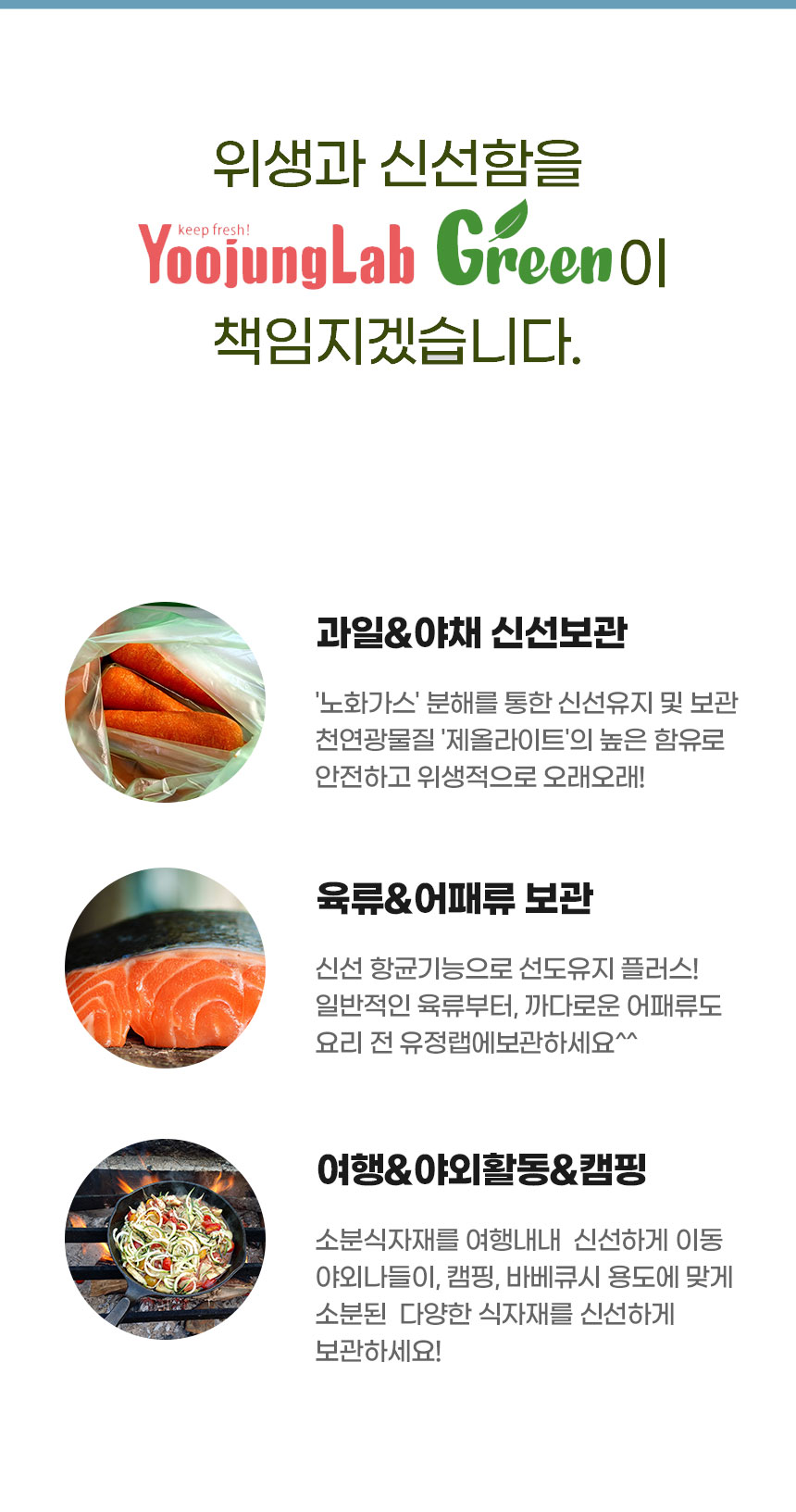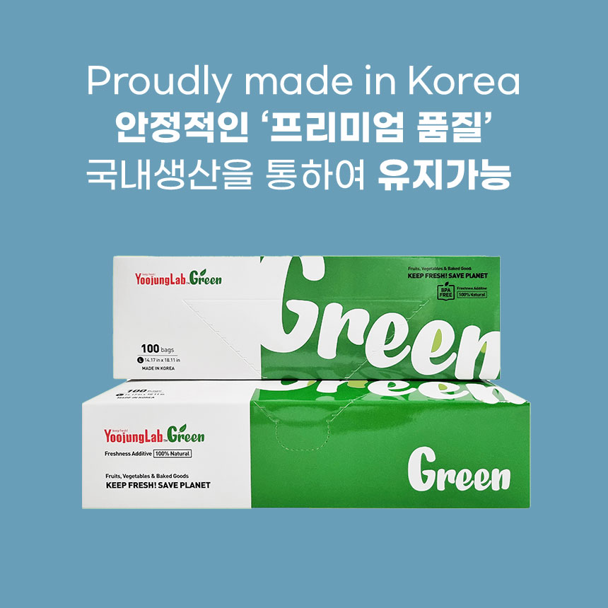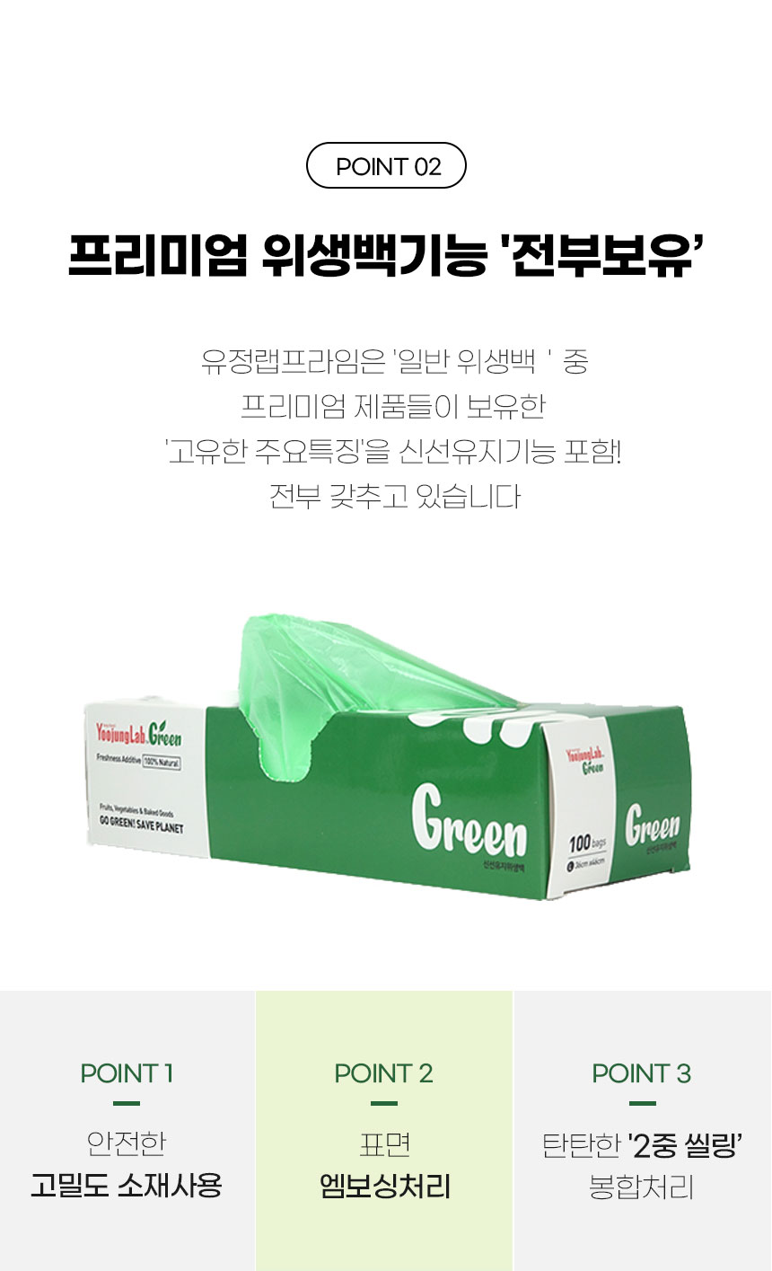 • 유정랩 그린백 중형 25x37cm 200매 신선유지 항균 위생백 야채 소분 식재료 보관 과일 통