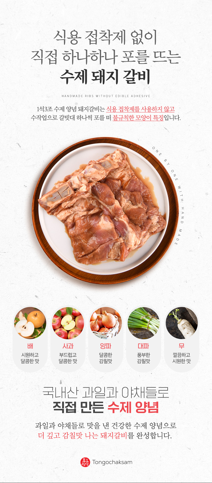 돼지갈비(국내산)60%,소스[배(국내산)0,67%,사과(국내산)0,67%,양파(국내산)0,67%,무(국내산)0,67%,파인애플슬라이스0,67%,아카시아청1.33%,설탕0,67%,참기름0,13%,물엿0,67%,맛소금0,26%,카라멜색소0,67%,글루탐산나트륨,정제수20%,간장5,2%