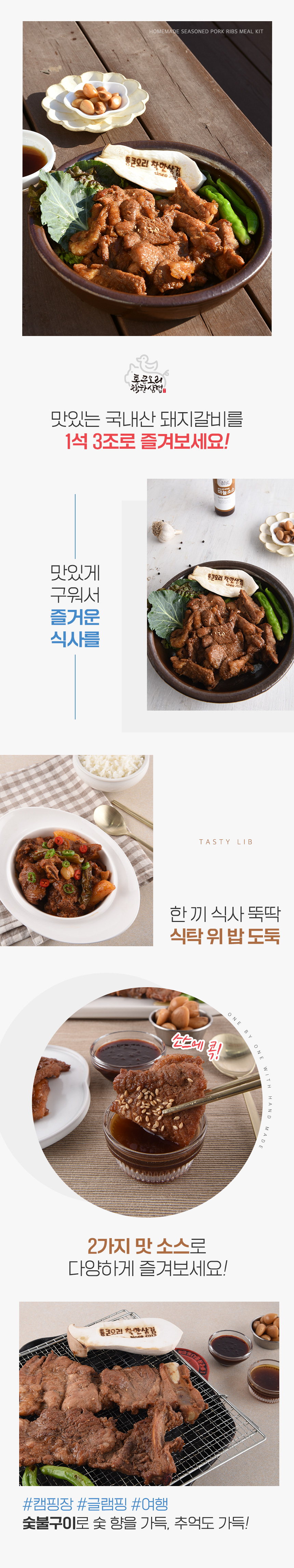 캠핑푸드 캠핑요리 캠핑메뉴 국내산 양념갈비 돼지갈비 밀키트 반조리
