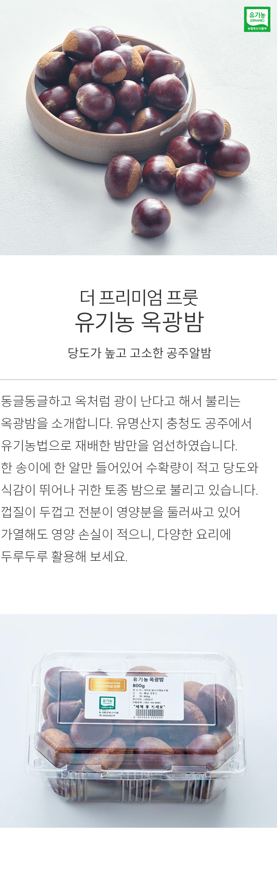 유기농 공주 옥광밤(800g/대) 수량빼기 수량추가 17,900 원 총 수량 1 개 17,900 원 구매옵션 닫기 선물하기 구매후기 626 상품상세 정기구독 장바구니 정기구독 장바구니 판매종료 정기배송 장바구니