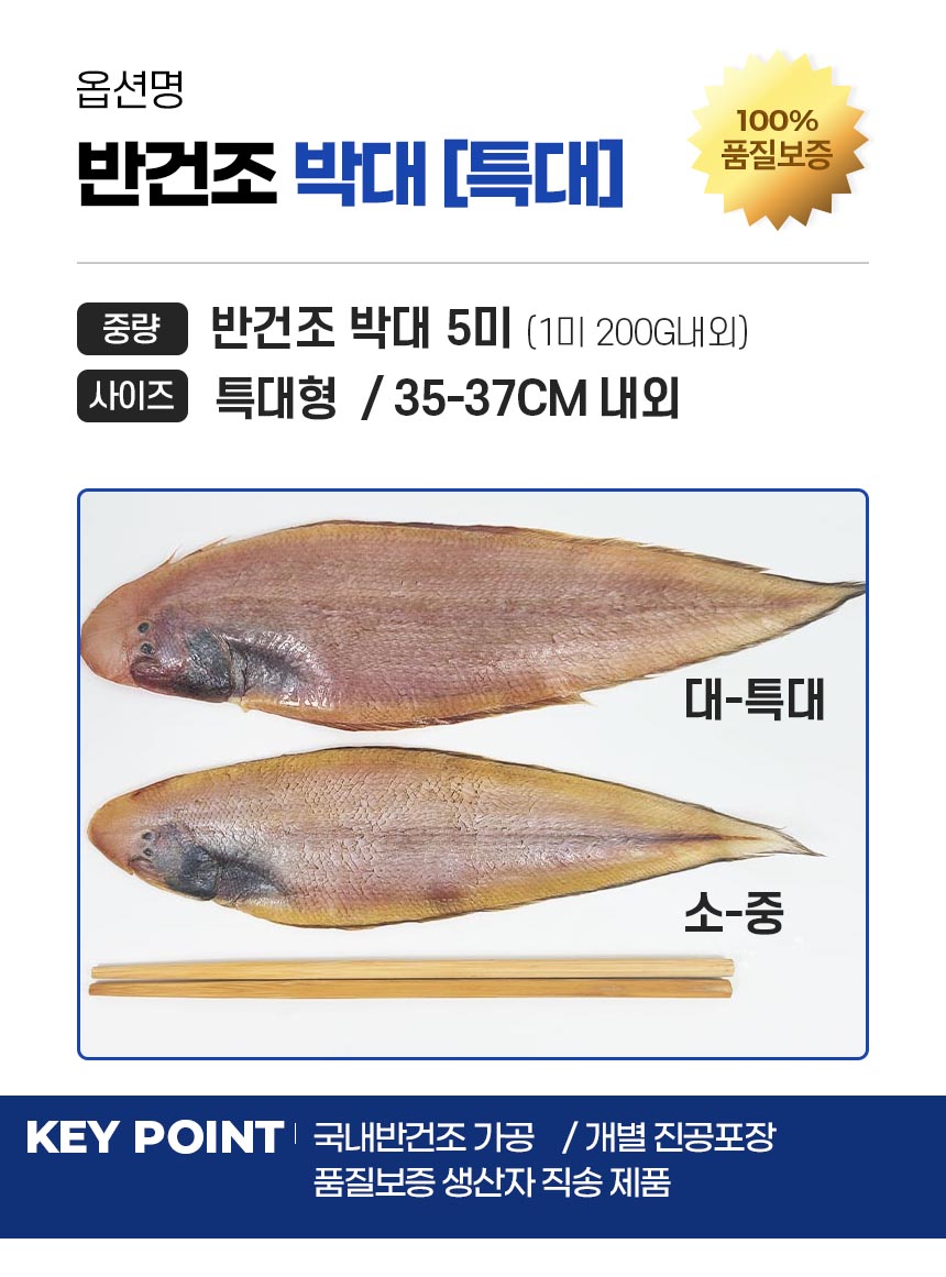 해풍 반건조 박대 소 중 대 특대 5미 1마리당 26-27cm내외