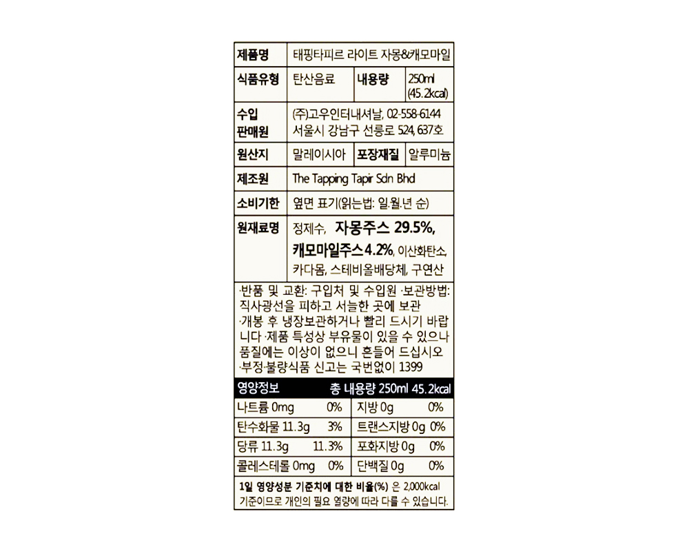 태핑타피르 자몽&캐모마일(250ml) 수량빼기 수량추가 2,600 원 총 수량 1 개 2,600 원 구매옵션 닫기 찜하기 추가 찜하기 삭제 구매후기 135 상품상세 정기구독 장바구니 정기구독 장바구니 판매종료 정기배송 장바구니