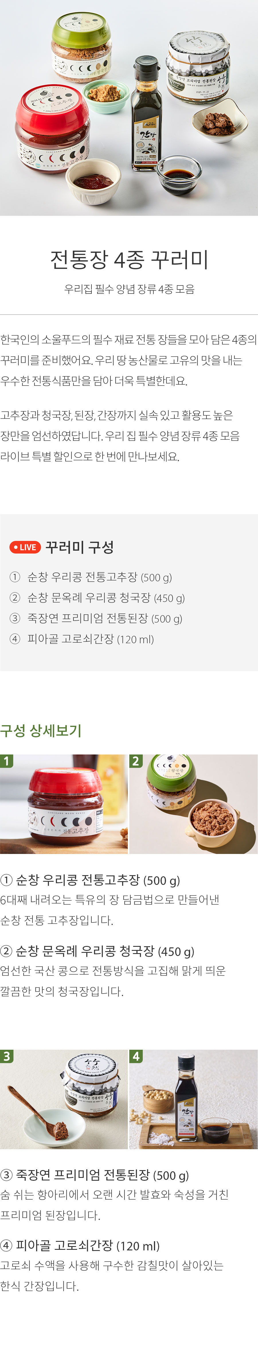 - 대두75%(국산) 고로쇠수액20%(국산) 천일염5%(국산)