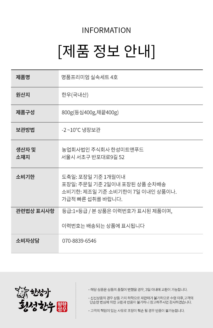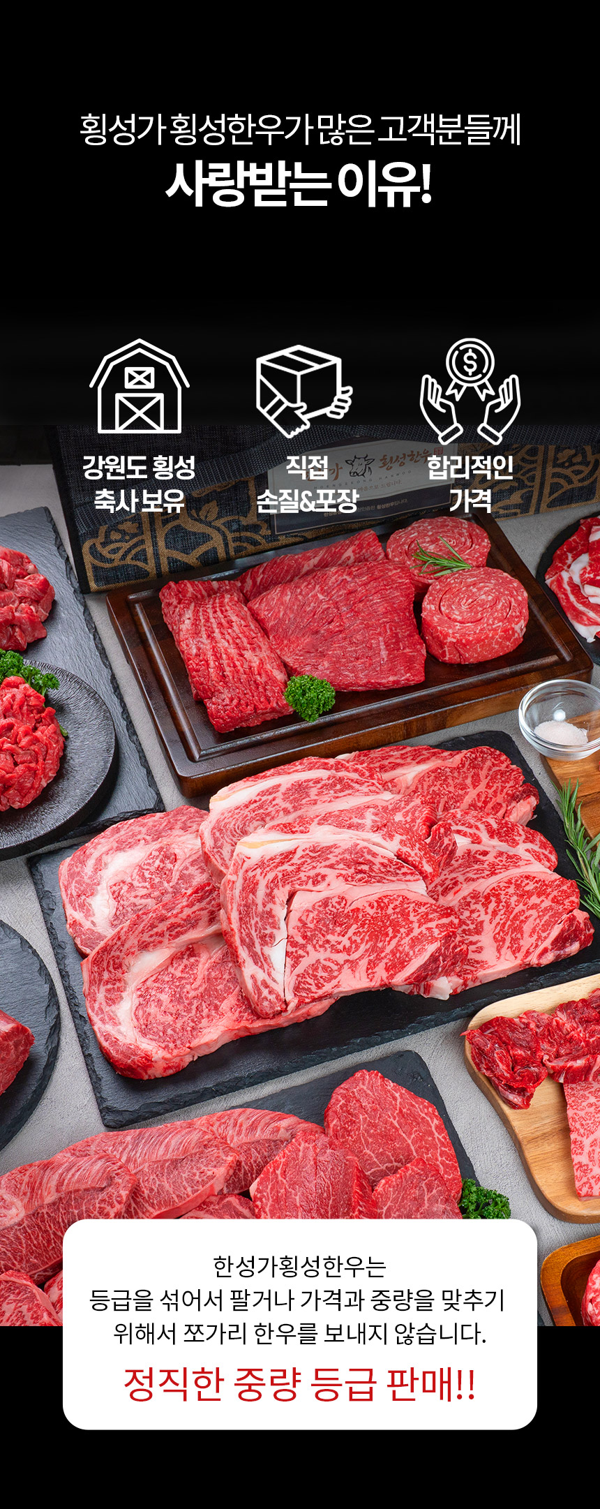 속이지 않는 등급,중량 믿을수 있는 한성가횡성한우