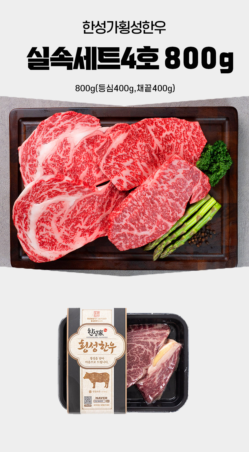 • [한성가횡성한우]정품 횡성한우 명품프리미엄 실속세트 4호 800g(등심400g,채끝400g)