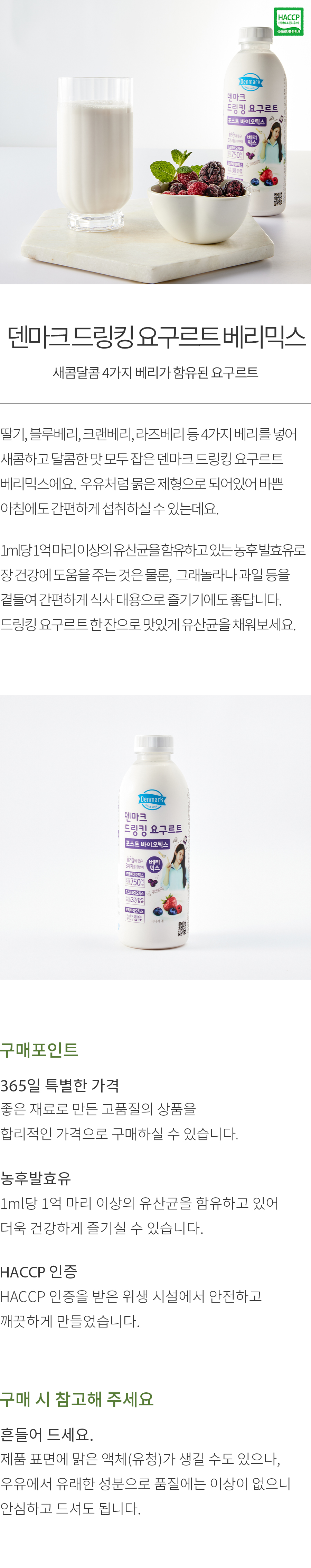 덴마크 드링킹 요구르트 포스트바이오틱스 베리믹스 750ml