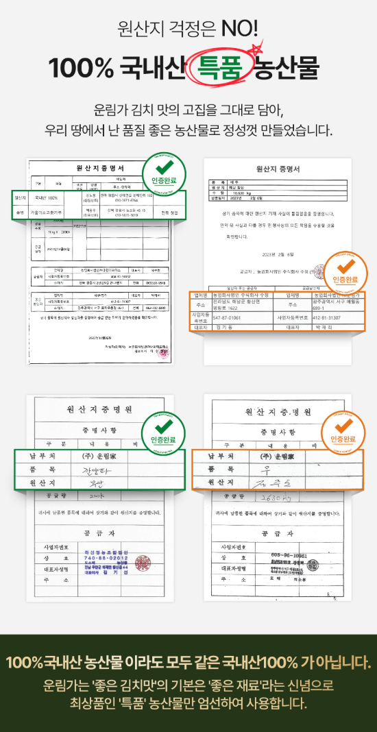 3. 100% 국내산 특품 등급의 엄선된 농산물!