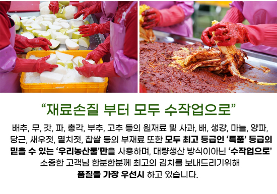 4. 대량생산 방식이 아닌 김치의 품질을 높이기 위해 수작업으로 생산!