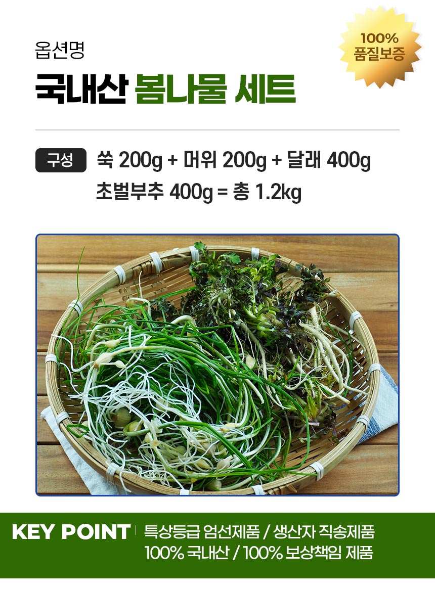 • 봄나물 4종 모음세트 쑥 달래 두릅 머위 각 200g