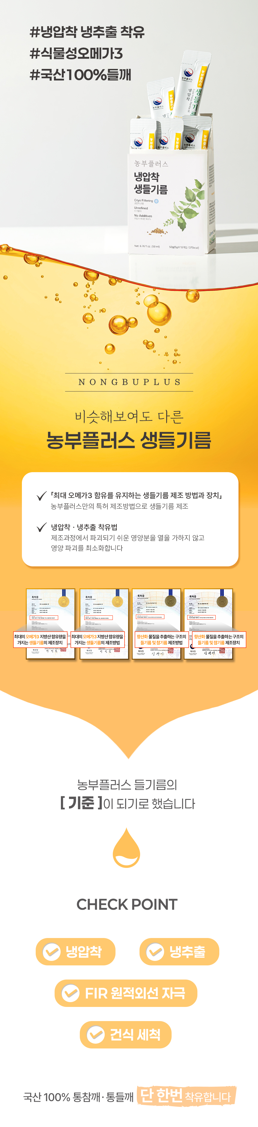 • 농부플러스 국산 냉압착 생들기름 오메가3 스틱 5g 10개입