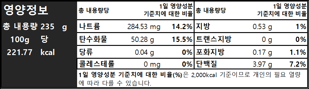 멥쌀(국산) 99%, 천일염(국산) 1%