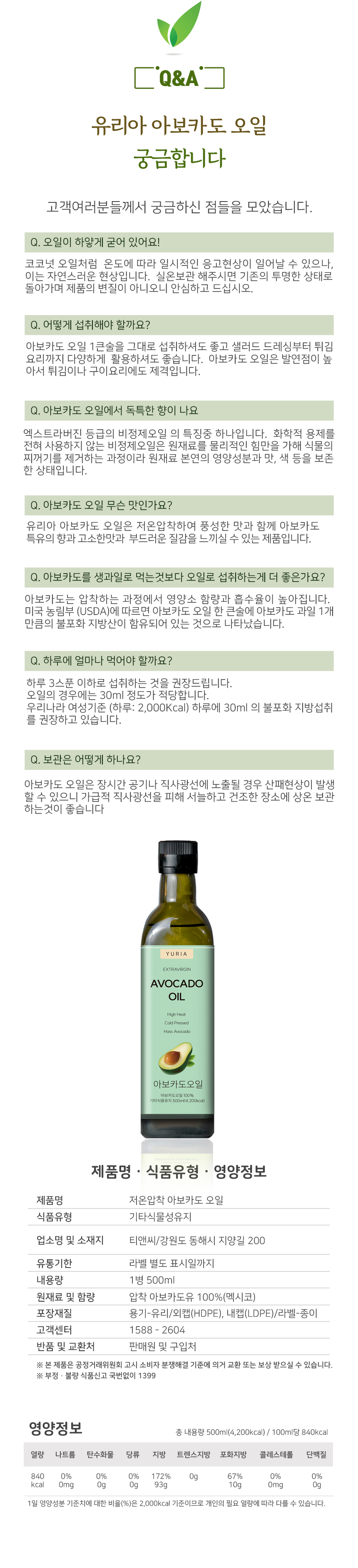 • 유리아 저온압착 엑스트라버진 아보카도 오일 500ml