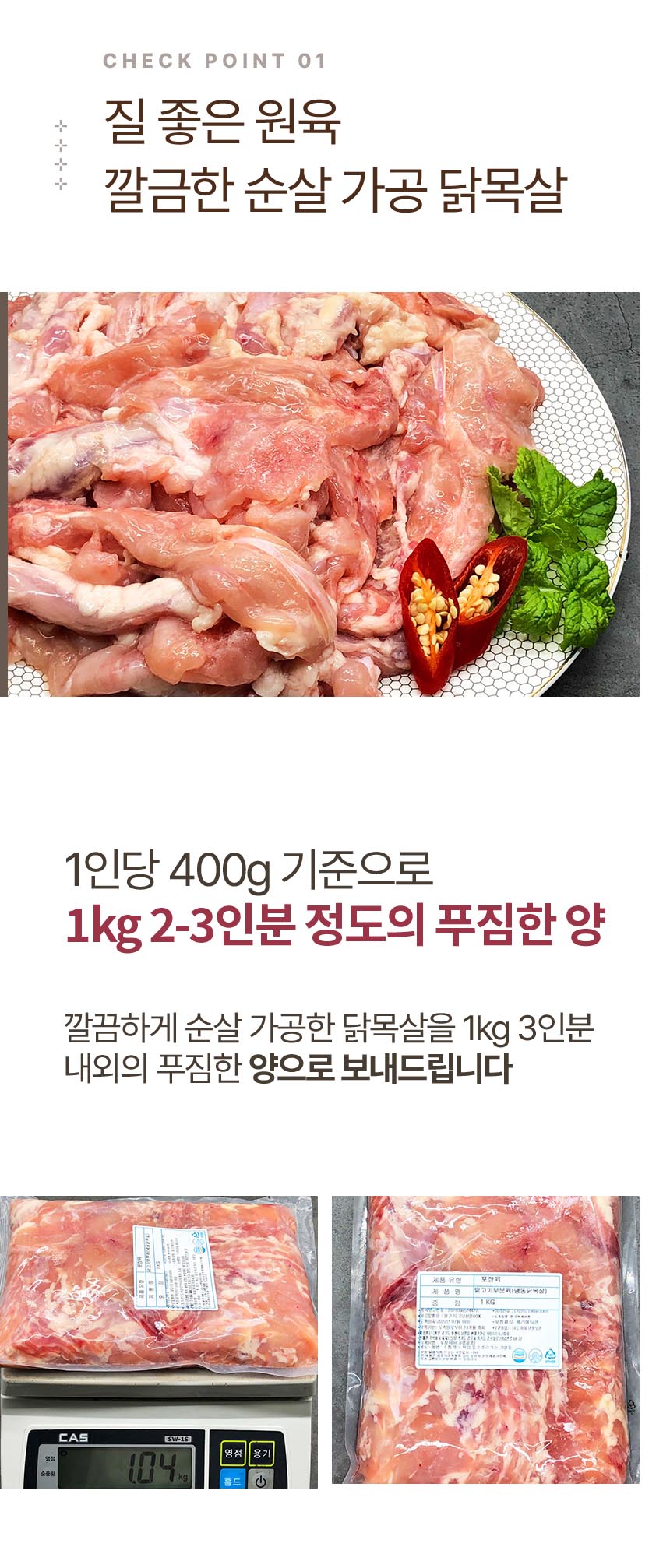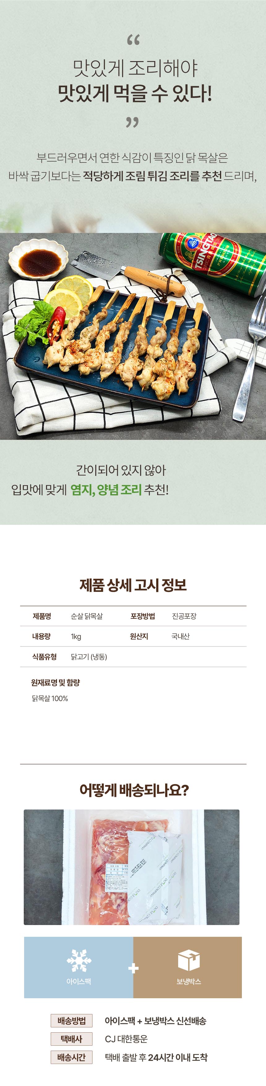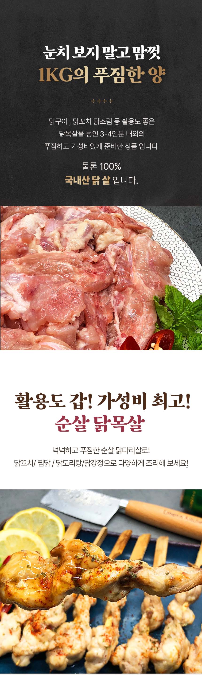 • 닭고기 별미 부위 국내산 순살 닭목살 1kg