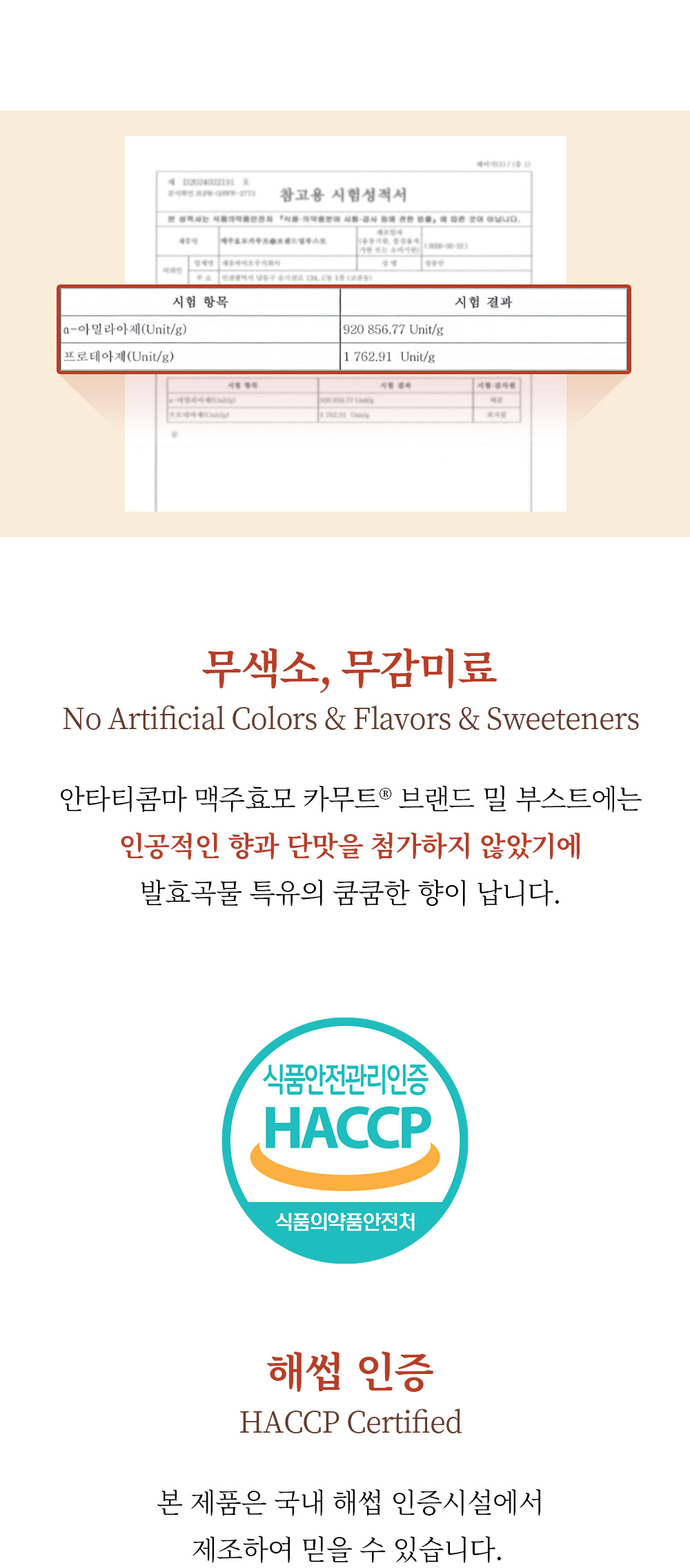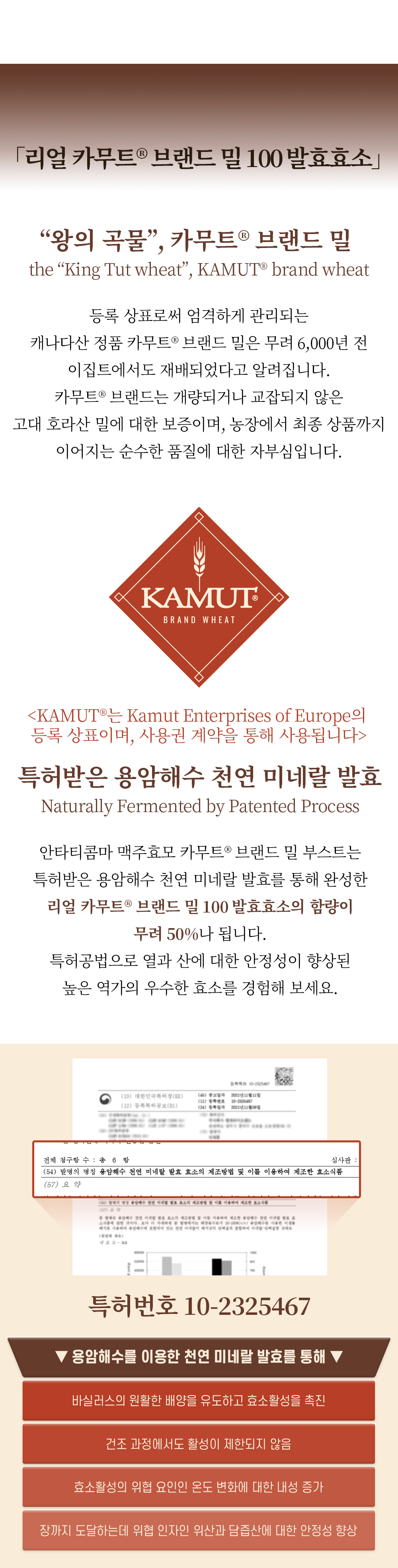 2. 카무트ⓡ 브랜드 밀 상표를 받은 원료로 제조하였습니다.