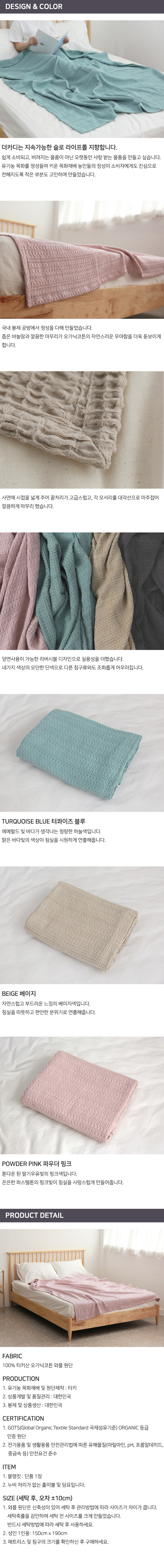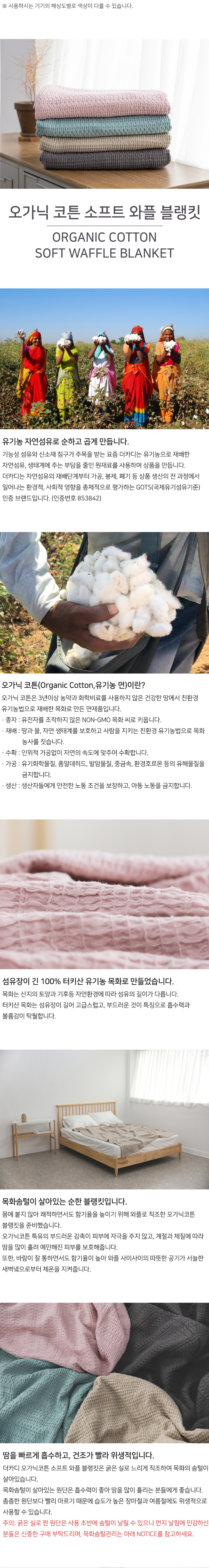 오가닉코튼 소프트 와플 블랭킷 ORGANIC COTTON 유기농면 홑이불 담요
