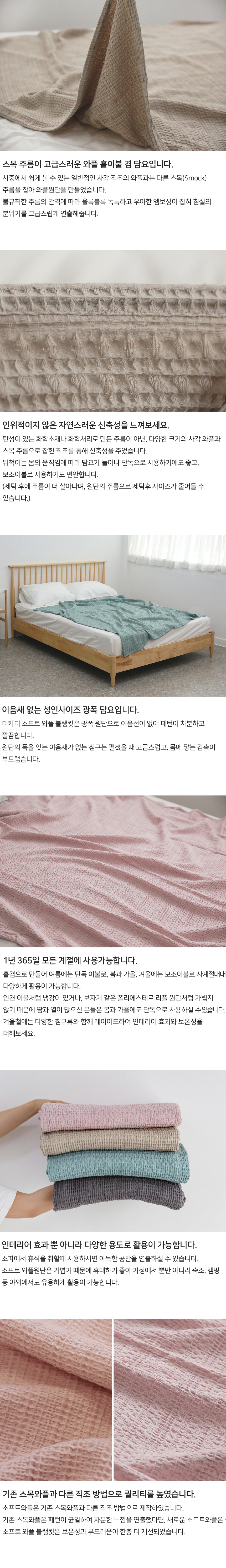 목화솜털이 살아있어 부드러운 감촉을 느낄 수 있는 독특한 와플 직조의 블랭킷