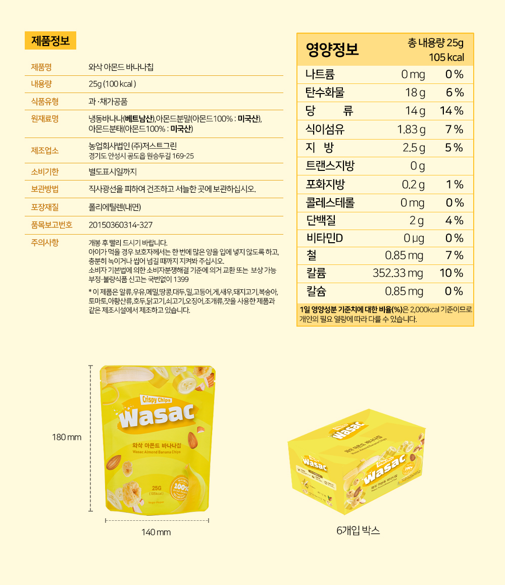 • [저스트그린]와삭 아몬드 바나나 칩 25g