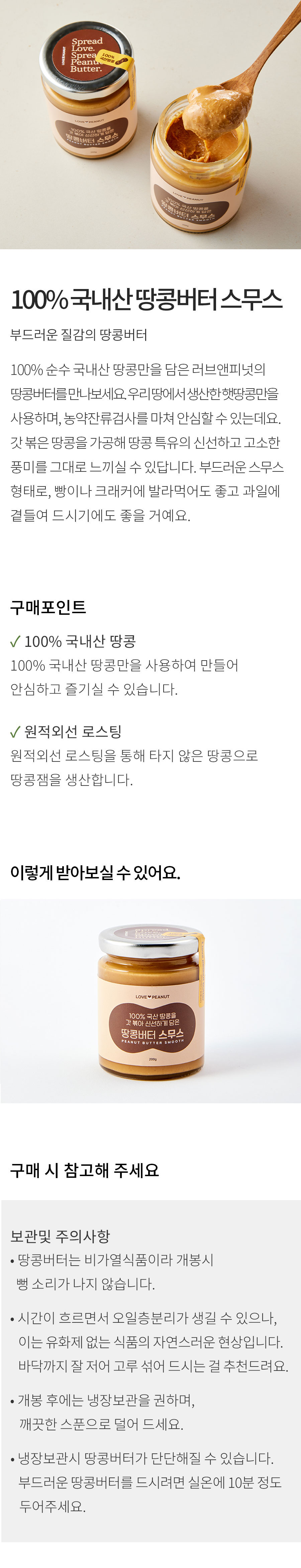 [러브앤피넛] 100% 국내산 땅콩버터 스무스 (210g)