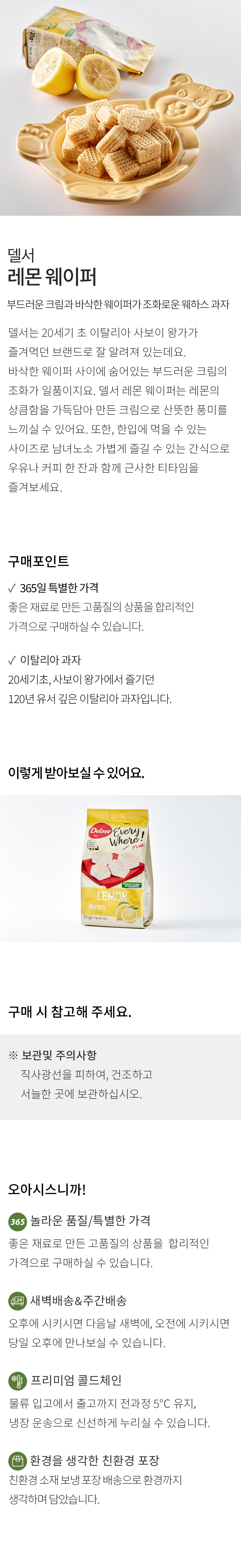 델서 레몬 웨이퍼(125g) 수량빼기 수량추가 3,600 원 총 수량 1 개 3,600 원 구매옵션 닫기 선물하기 구매후기 51 상품상세 정기구독 장바구니 정기구독 장바구니 판매종료 정기배송 장바구니