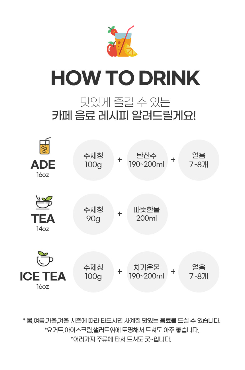 우리집을 홈카페로, 농진담 수제 100% 건강한 과일청