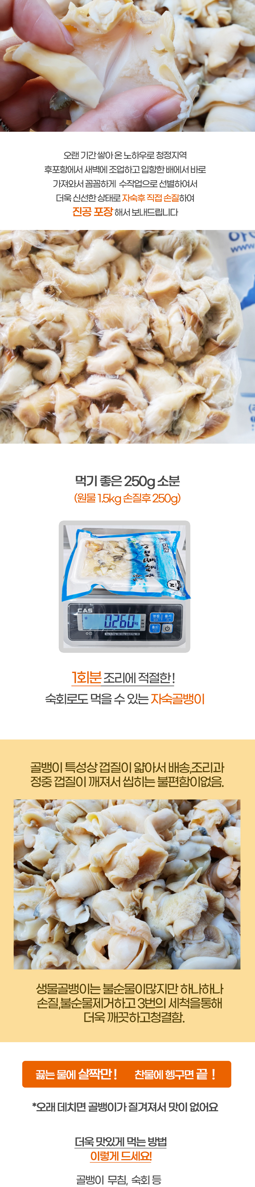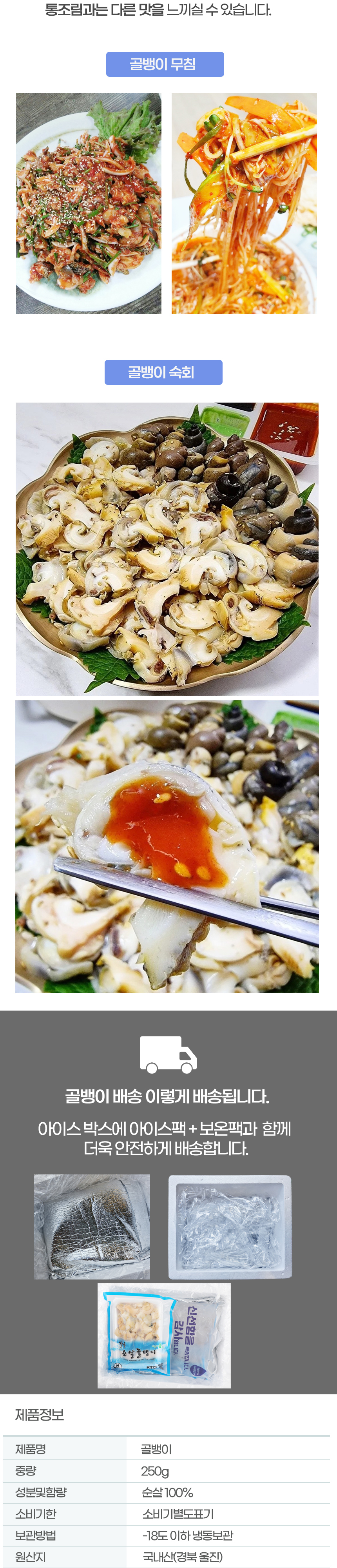 골뱅이 자숙 손질 순살 동해안 후포항 생물 급냉동 250g